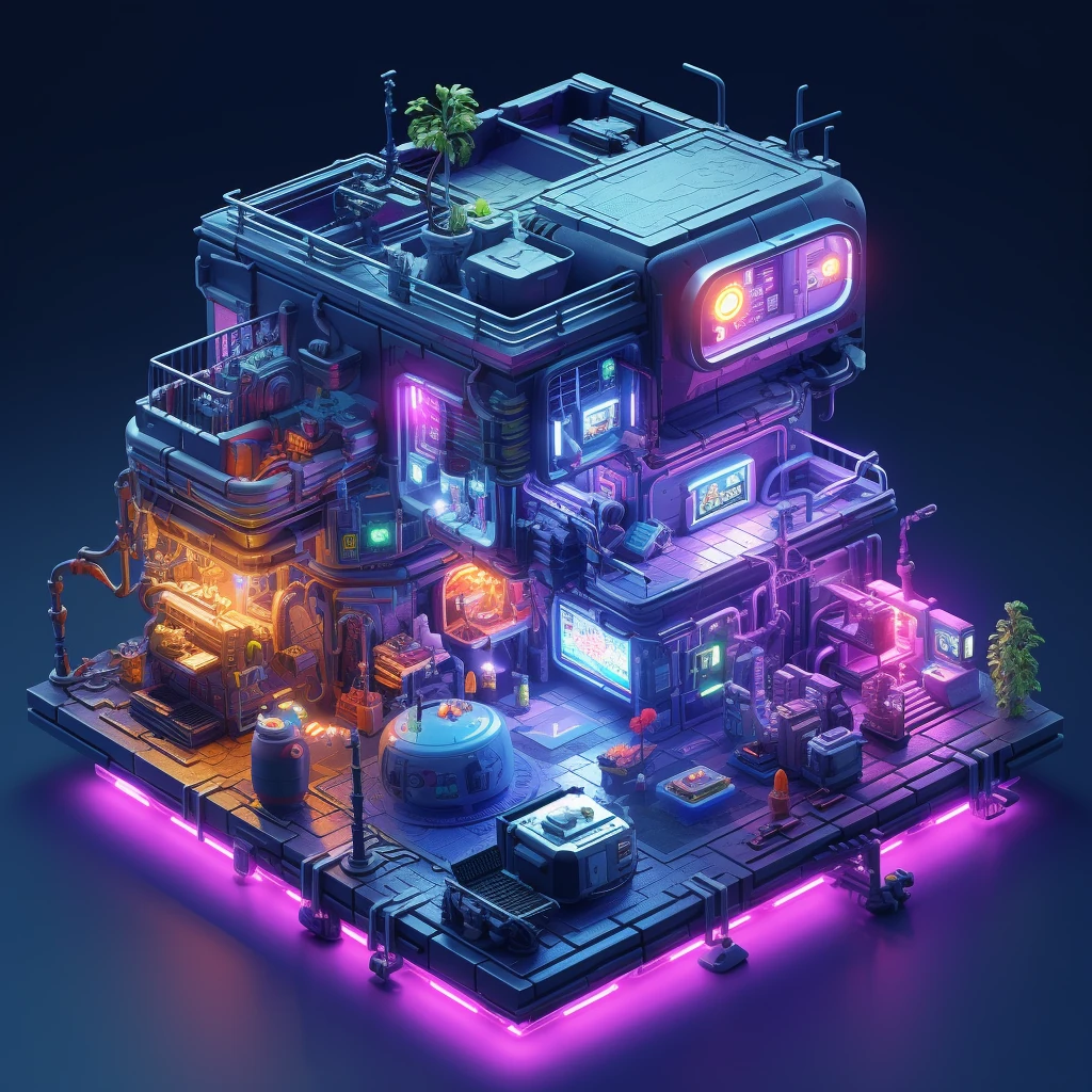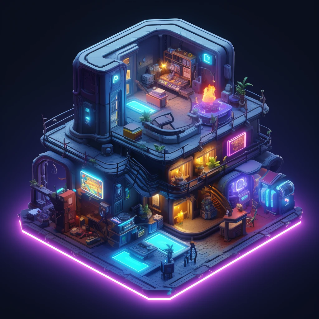 Cyberpunk Hacker's Den and Virtual Reality Arcade