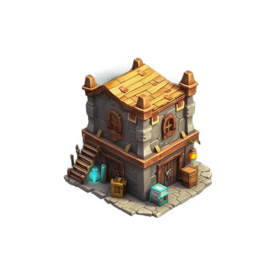 The Mint is a valuable building that turns raw gold bars into gleaming gold coins. These coins can be used to increase the morale of your army, making them more effective in battle, and to pay the wages of your knights. By upgrading the Mint, you can produce more gold coins, allowing you to further bolster your army and grow your kingdom. | Back |